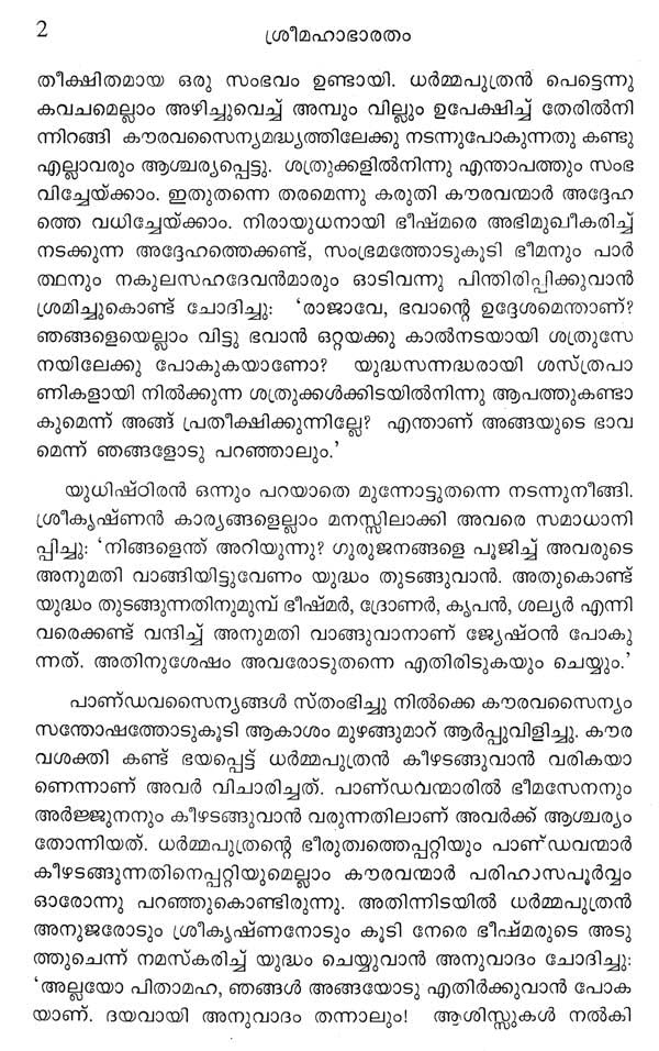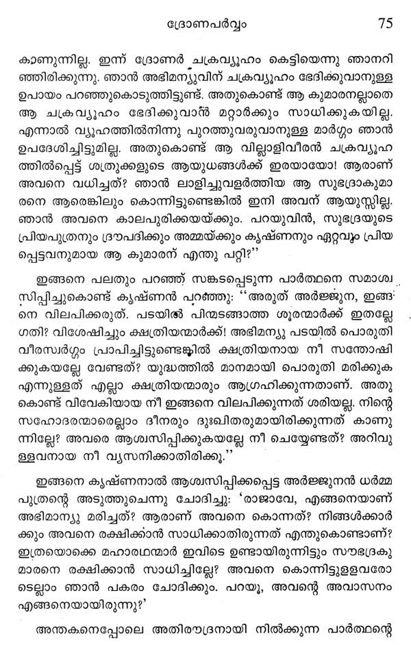 കഴിഞ്ഞ അനേകായിരം വർഷങ്ങളായി, ഈ ഇതിഹാസത്തിലെ പ്രസ്തുതങ്ങളും അപ്രസ്തുതങ്ങളുമായ അനേകശതം കഥാപുരുഷന്മാരാണ് സകലഭാരതജനത യുടെ യും സർവ്വോത്കൃഷ്ടമായ പൈതൃകസമ്പത്ത്. അവരുടെ ചിന്തകളുടെയും ആശയങ്ങ ളുടെയും ധര്മ്മത്തിന്റെയും നീതിയുടെയും അടിത്തറയാണത്.
